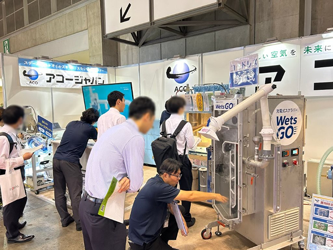 弊社ブースでは、新製品のコードレスで移動ラクラク「Wets GO(充電式スクラバー)」や、バグフィルター(フィルター式集塵機)等のご紹介を行いました。展示会に出展した製品を下記にてご報告致しますので、この機会に是非ご覧ください。
