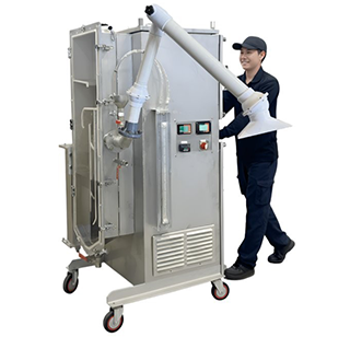 紛体を投入する際に飛散する微粉を吸引しながら回収できる装置です。