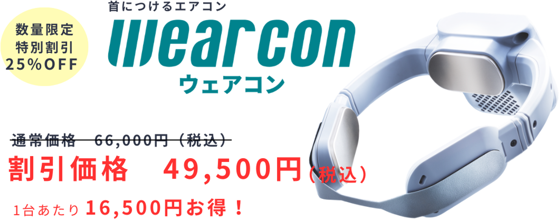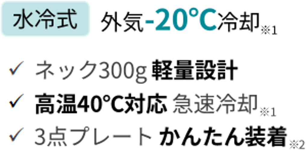 ※1 wearconにおいて。当社恒温槽、環境40℃、バッテリー残量100%時、冷房Highモードで運転を開始、60秒で左右の冷却プレートが外気-20℃に到達することを確認。