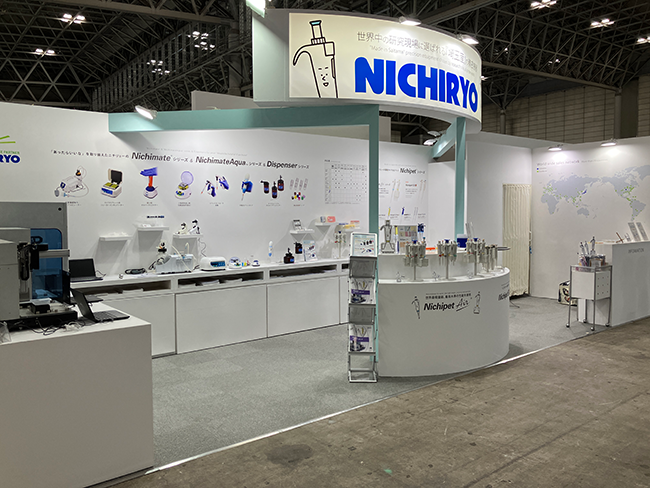 弊社ブースでは、ベストセラーの最新モデル『Nichipet EXⅢ』、世界最軽量級マイクロピペット『Nichipet Air』をはじめとするニチペットシリーズや、小型機器、自動分注機等を展示等のご紹介を行いました。